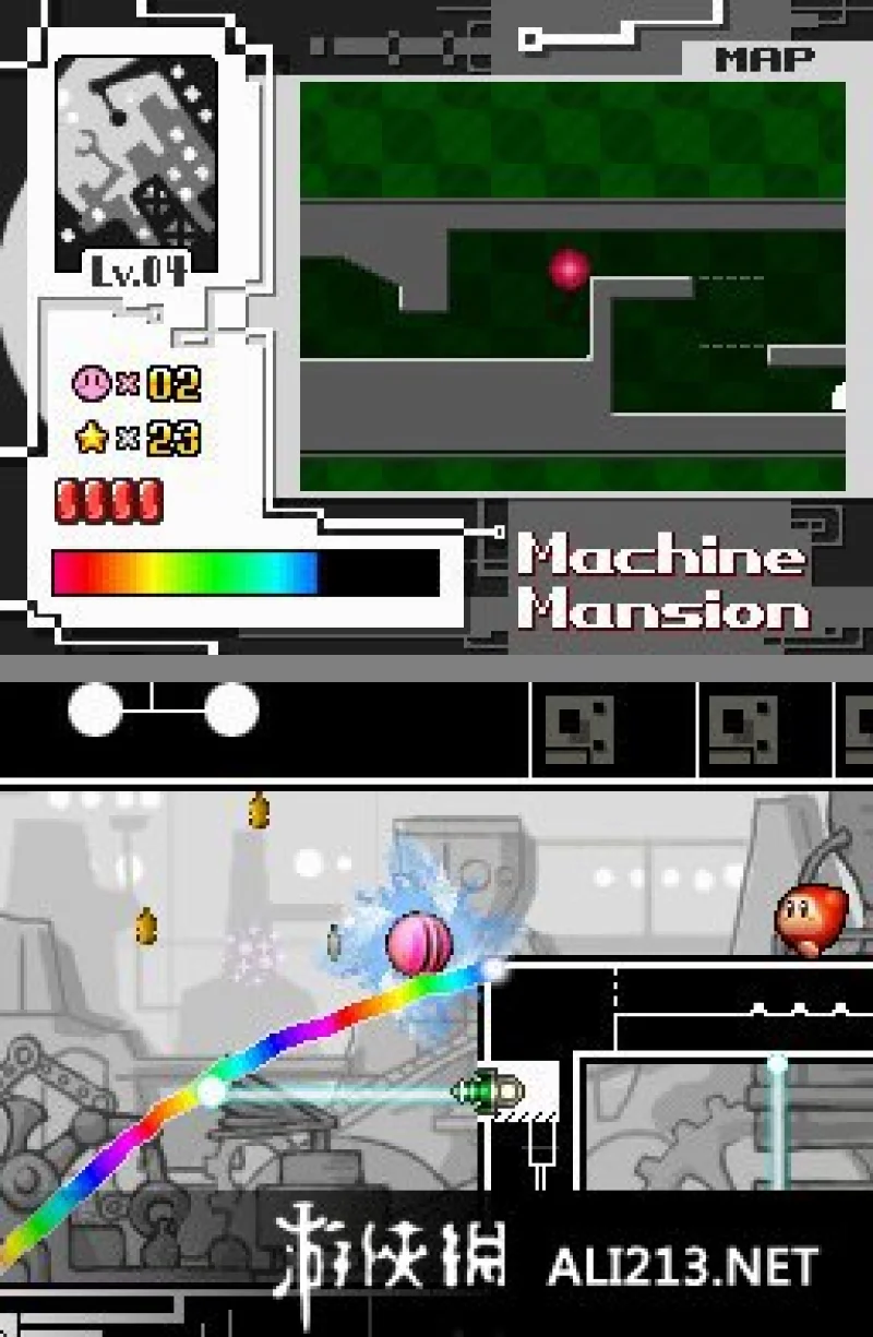 在本作中卡比碰到了一位女巫,她将整个世界变成了一幅画,并且将卡比变成了球。为了把世界和自己变回原样,卡比展开了新的冒险。女巫离开时留下了一枝魔笔,这枝笔就成了卡比的武器。这枝魔笔就是玩家所要用的触摸笔,玩家要用触摸笔在屏幕上画彩虹,指引卡比前进。例如当你碰上诸如尖刺和深坑等障碍时,可以通过画一条彩虹引导卡比越过障碍,你可以画线圈、平台、斜坡等各种辅助前进的图形。触摸笔不仅可以用来绘画,在卡比沿着你画的线前进时,你可以用笔触摸他,让他做出诸如前冲攻击等动作,你甚至还可以直接用触摸笔点击敌人,时期暂时无法动弹。上屏幕用来显示地图,有趣的是,随着玩家在游戏中不断画图,上屏幕的地图也会改变。
