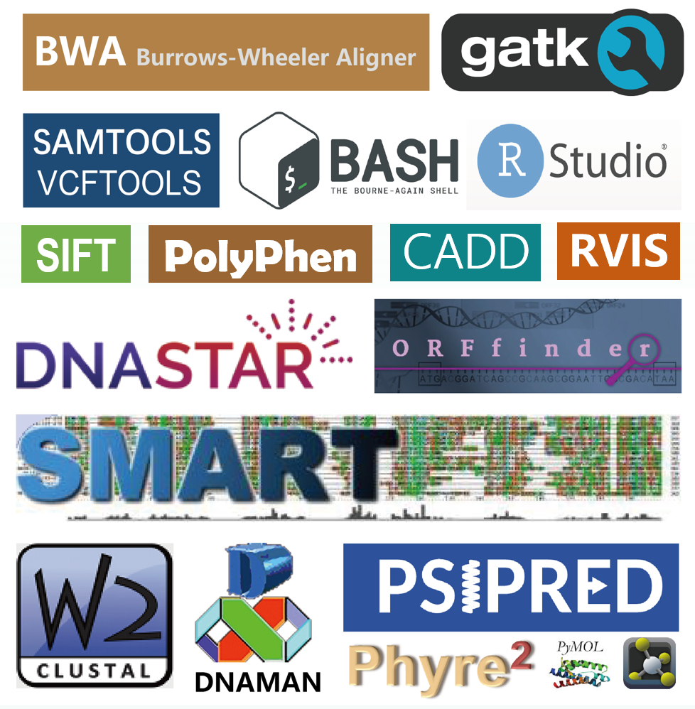 | 32 | 序列拼接、比对和蛋白质结构预测 | Sanger序列拼接, 测序峰图, 多序列比对, 突变对蛋白修饰(磷酸化和糖基化)的影响预测, 结构域预测, 突变对蛋白三维结构影响, 突变对蛋白表面电荷, 化学键, 空间位阻, 亲疏水性的影响 |