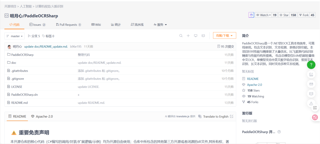 启动PaddleOCRSharp是因为看到.NET开发者在OCR领域缺乏一个高性能、中文高识别率工具的痛点,尤其是企业级应用对离线部署、多语言支持的需求。很多中小型企业,没有技术人员去研究技术,想要快速、低成本的部署和使用OCR技术。