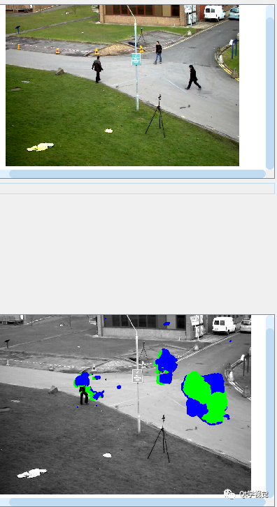 //光流跟踪HFvoid QGuiVideo::btnLightFlowTrackHF_clicked(){StopGrap();QString fileName = QFileDialog::getOpenFileName(this, "open Video", "", "Video File(*.avi *.mp4 *.mp3)");if (m_videoGrab.open(fileName.toStdString())){m_nGrabModel = 6;m_videoGrab.read(m_matGrab);cvtColor(m_matGrab, m_matPrevGray, COLOR_BGR2GRAY);m_timerGrabImage->start(10);}}//实时更新采集到的图片void QGuiVideo::updateGrabImage(){if (!m_videoGrab.isOpened()){return;}if (m_videoGrab.read(m_matGrab)){if (m_matGrab.data){Mat grab;cvtColor(m_matGrab, grab, COLOR_BGR2RGB);//Qt中支持的是RGB图像, OpenCV中支持的是BGRQImage grabimage = QImage((uchar*)(grab.data), grab.cols, grab.rows, QImage::Format_RGB888);ui.graphicsViewVideo->recvShowPicSignal(grabimage);if (!m_matPrevGray.empty()){Mat gray, flowResult, flowdata;cvtColor(m_matGrab, gray, COLOR_BGR2GRAY);calcOpticalFlowFarneback(m_matPrevGray, gray, flowdata, 0.5, 3, 15, 3, 5, 1.2, 0);cvtColor(m_matPrevGray, flowResult, COLOR_GRAY2BGR);for (int row = 0; row < flowResult.rows; row++){for (int col = 0; col < flowResult.cols; col++){const Point2f fxy = flowdata.at(row, col); if (fxy.x > 1 || fxy.y > 1){cv::line(flowResult, Point(col, row), Point(cvRound(col + fxy.x), cvRound(row + fxy.y)), Scalar(0, 255, 0), 2, 8, 0);cv::circle(flowResult, Point(col, row), 2, Scalar(0, 0, 255), -1);}}}QImage grabimage = QImage((uchar*)(flowResult.data), flowResult.cols, flowResult.rows, QImage::Format_RGB888);ui.graphicsViewVideoPro->recvShowPicSignal(grabimage);}}}