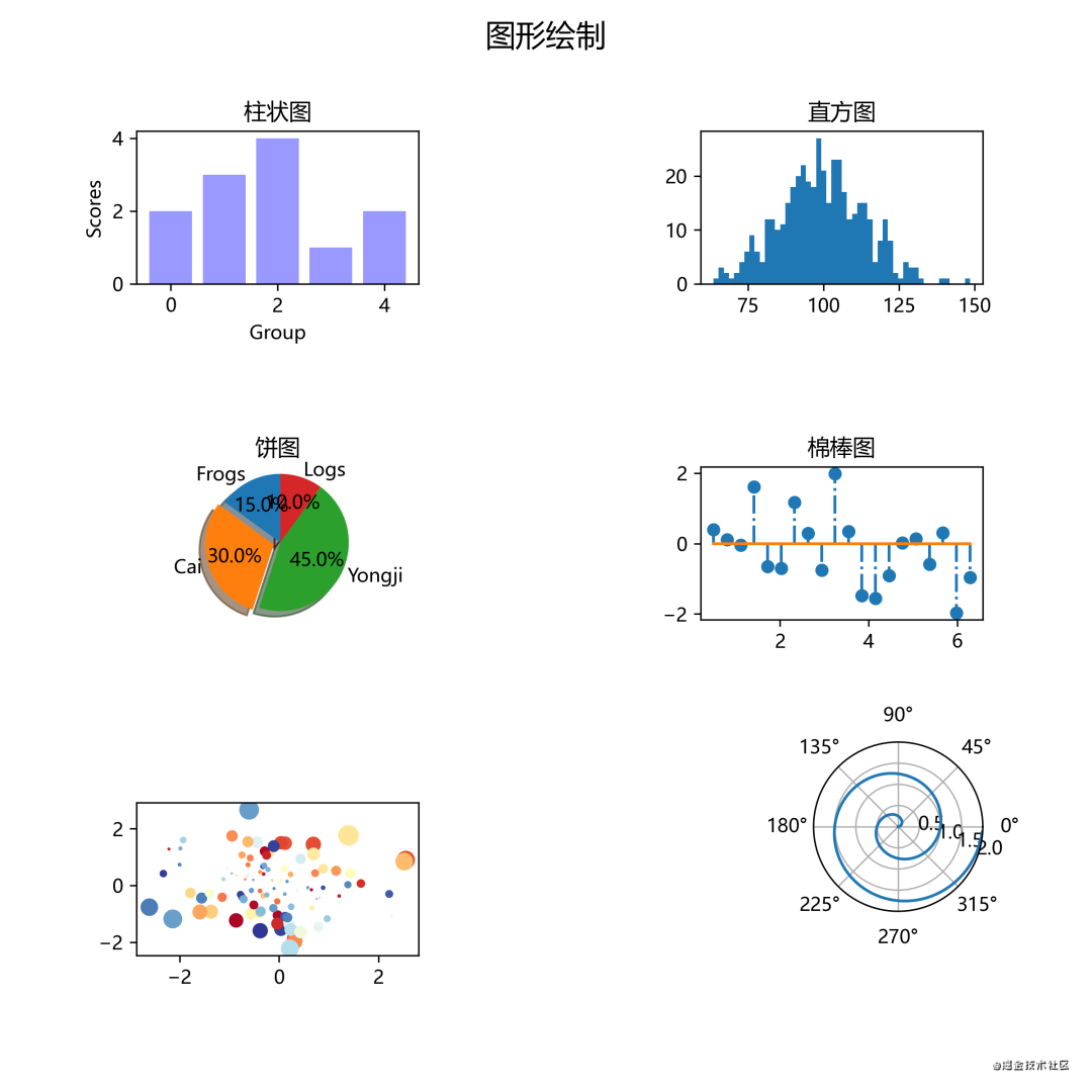 我们常用图来表示数据之间的关系,常见的图包括直方图、柱状图、饼图、散点图等等。