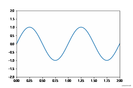 ax = plt.axes(xlim=(0, 2), ylim=(-2, 2))