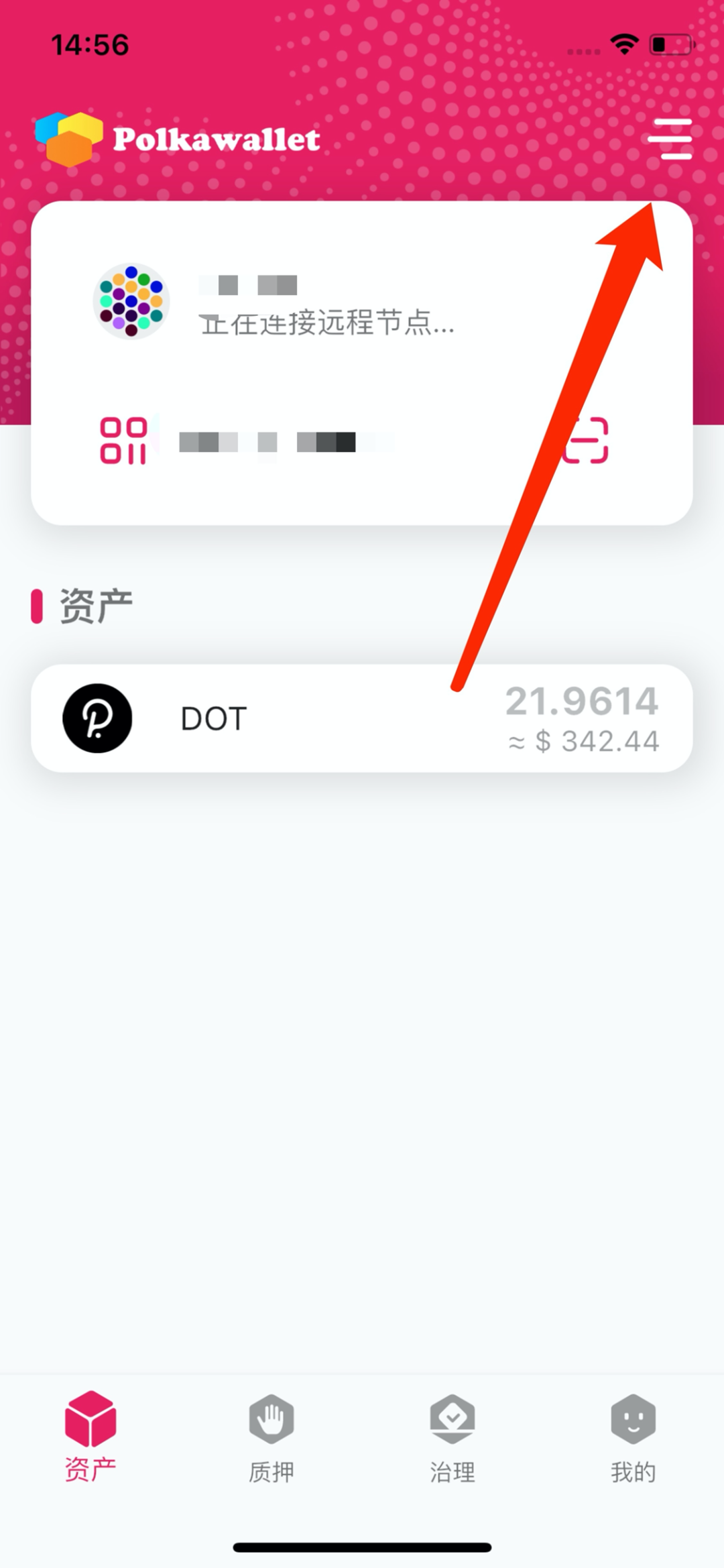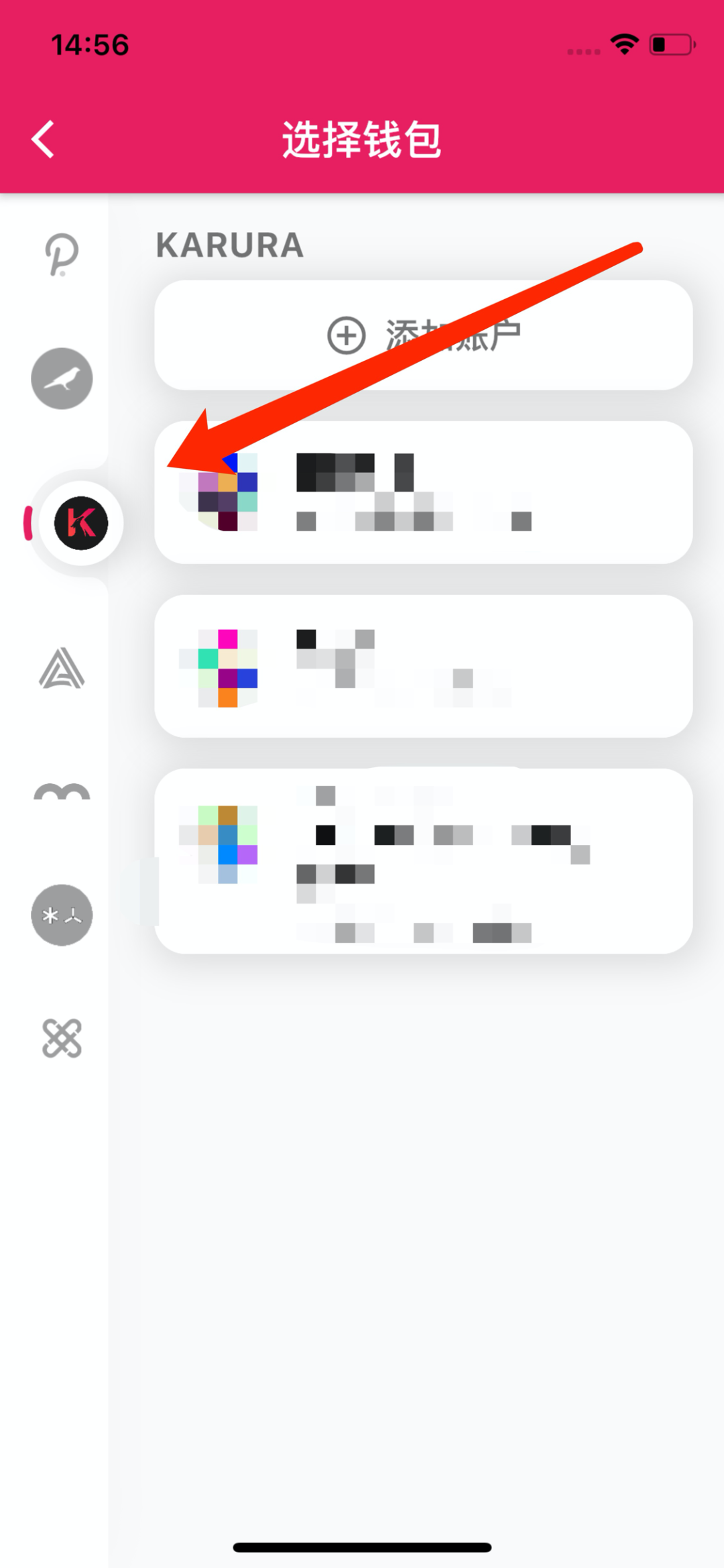 3、点击右上角切换网络 icon,点击 Karura 网络按钮即可,若链接失败可在「设置-远程节点」切换不同节点,或切换手机网络即可