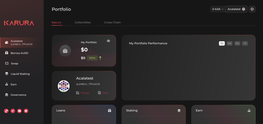 4、等 Karura 功能上线后,就可登陆 Karura 平台用该帐户参与活动与使用平台功能。