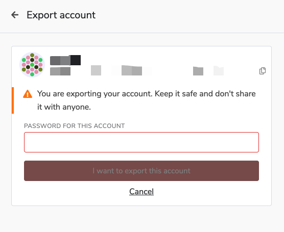 4、作为备份,建议点击侧边 icon ,点击「 Export 」将新生成的帐户导出并将其保存安全的地方