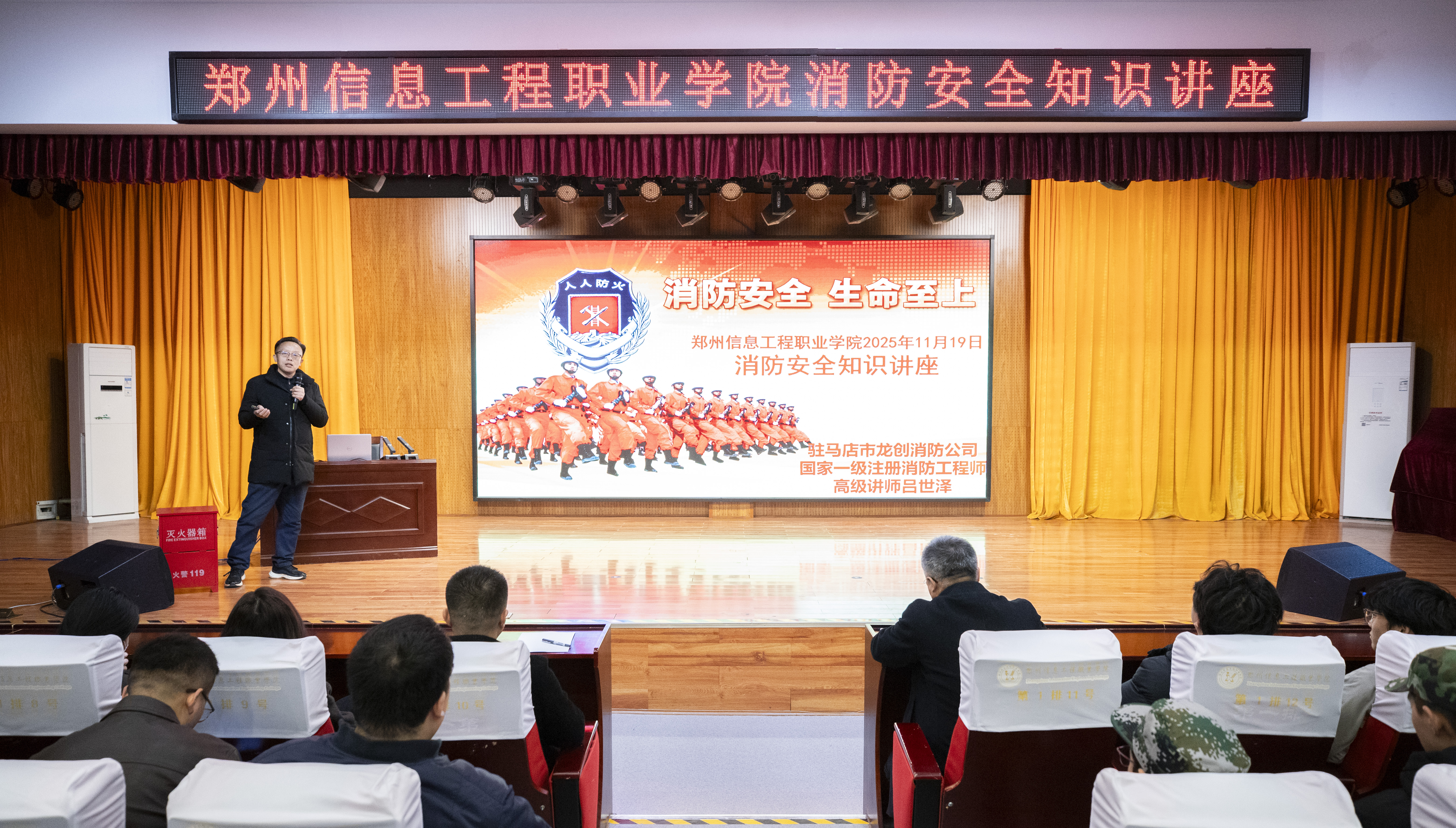 11月19日,驻马店校友会彭志豪校友特邀其所在单位—驻马店市龙创消防科技有限公司高级工程师、河南省十大优秀消防工程师吕世泽来校举办“消防安全、生命至上”公益讲座。传递安全理念,践行社会责任,充分展现郑信人“饮水思源、感恩回馈”的精神风貌。