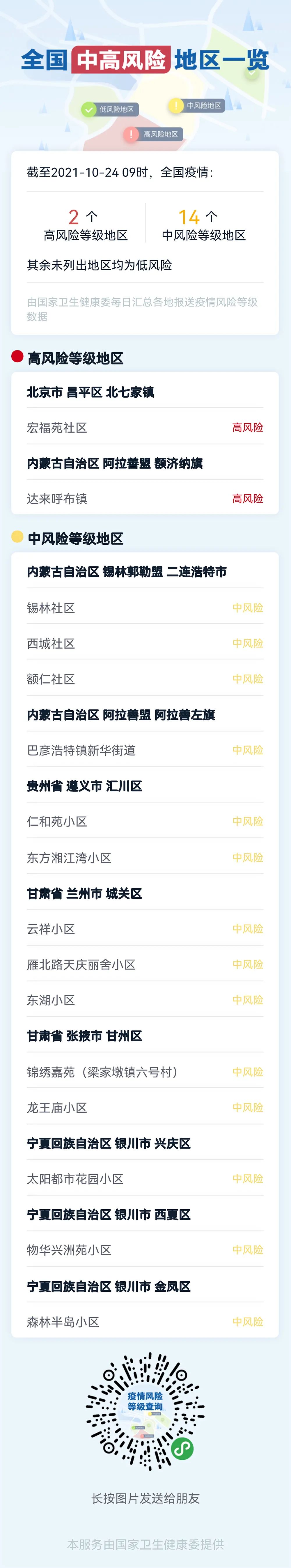 最新!全国高风险地区2个,中风险地区14个盱眙老妹关注2021-10-27 02:15 盱眙老妹微信自媒体主要从事:品牌推广︎、活动策划︎、微信平台营销代运营︎、免费发布公益便民信息、企业招聘︎、商标注册、征婚交友、公益救助、维权爆料等服务。欢迎广大网友积极参与。免责声明:盱眙老妹微信平台是面向普通网友的信息发布平台,目的是为传递更多信息,网友发布爆料不代表本网赞同其观点和对其真实性负责。如因作品内容、版权和其它问题,请联系小编删除。 浏览 4点赞 评论 收藏 分享 手机扫一扫分享分享 举报 评论图片表情视频评价全部评论推荐 苏州再发通告!多地调整为中风险地区!盱眙老妹0最新!全国疫情风险地区汇总盱眙老妹0关于盱眙县一区域调整为中风险地区的通告盱眙老妹0南京公布2例确诊病例行程轨迹,一小区调整为中风险地区盱眙老妹0中风狂走中风狂走0中风正村中风正村现有土地3920亩,856户,4013人。村庄座落在鸡泽县西南部,距离县城6公里,是鸡泽县风最新全国姓名报告出炉!i小码哥0中国金茂撤销区域架构,重组为14个地区公司3月18日,据报道,中国金茂将进行组织架构调整,撤销原有的“总部-区域-城市”三级管控架构,改为“总部-地区”二级管控架构。此次调整将取消华北、华东、华南、华中、西南五个区域公司,现有城市公司撤并重组为14个地区公司。中国金茂表示,此次调整旨在重点做大做优公司重点城市,强化总部运营管控,提高组织敏捷度和决策效率。此次调整将在保持现有队伍规模的前提下进行,员工队伍将总体保持平稳。中风正村中风正村现有土地3920亩,856户,4013人。村庄座落在鸡泽县西南部,距离县城6公里,是鸡泽县风正乡人民政府所在地,为风正乡经济、文化、商贸中心。中风正村与廖庄村、胜利庄村、新风村、七一村、南风中风患者 La paralytique中风患者 La paralytique0点赞 评论 收藏 分享 手机扫一扫分享分享 举报