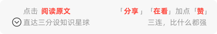 PS:欢迎大家关注三分设,每天早上9点,准时充电。分享优质设计、创意灵感、新知新识,定期大咖老师直播分享,零距离连麦,答疑解惑。 添加小小虫微信号【 Lil_Bug 】,备注【 三分设 】加入!(只面向星标了公众号三分设的粉丝)