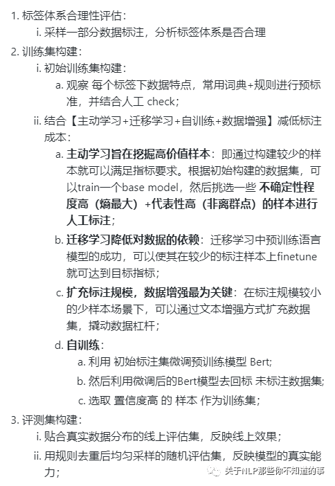 未知标签:业务冷启动时,如果尚不清楚设置哪些标签合适,可以尝试通过文本聚类方式初步划分标签,再辅以专家介入共同设定,这也是一个循环迭代的过程。