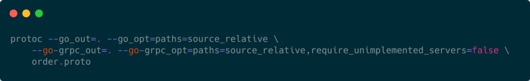 order.proto 接下来,我们使用带有必要 Go 选项的protoc来编译order.proto。