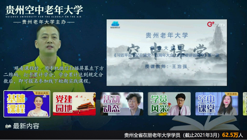 我们的目的很简单,希望更多的老年人通过大屏得到他们应该去享有优质老年教育的资源,在当中形成和我们交互和深度的联系。非常值得一提和非常荣幸的是什么?做空中老年大学也参与了了不起的工程,那就是整个贵州老年教育的改制,我们也没想到这个事情最后会变成大的趋势。也就是说,去老年大学线下报名的前提,必须是在IPTV电视端完成学习任务的打卡,才可以去线下老年大学报名。现在我们也在以社区为试点工作,我相信在不久的将来,一定会把老年教育的板块,普及到更多贵州中老年的用户当中,让老年人更多的感受到老有所学,老有所乐的快乐。