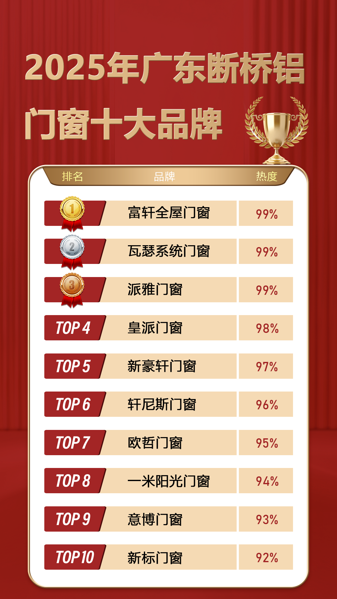 2025年广东断桥铝门窗十大品牌: