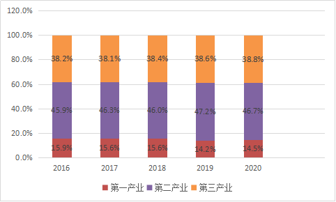 图2 2016-2020年三次产业增加值占地区生产总值比重