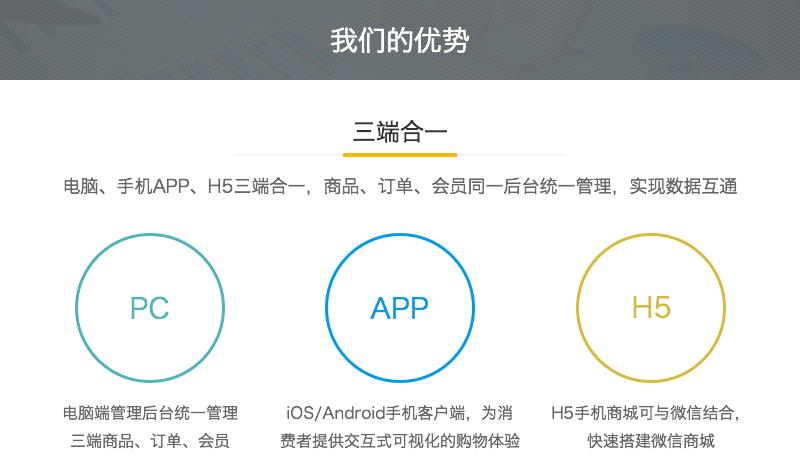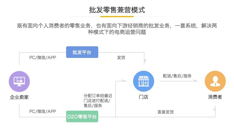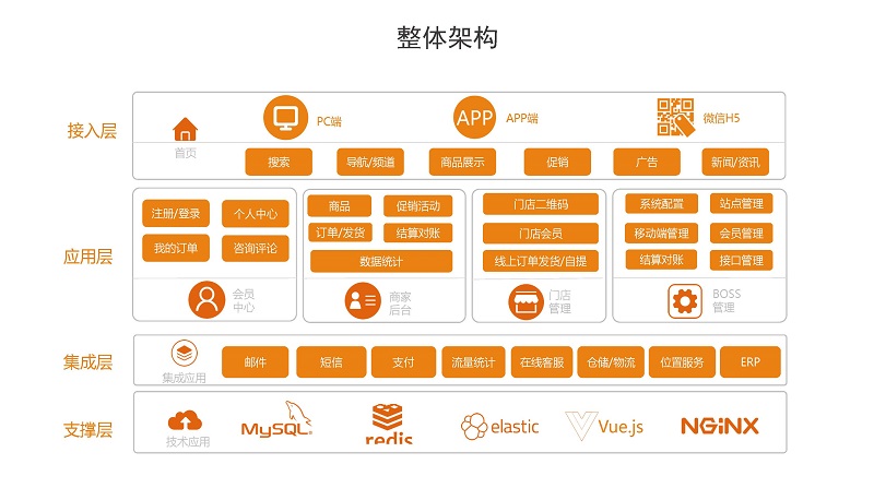 - 专注于全渠道零售、新分销的电商系统及垂直行业解决方案,定位于帮助电商创业企业及中高端客户快速构建全渠道电商系统,目前服务过的数千家企业级客户,交付成功率百分百