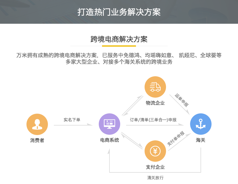 项目背景: “南京综保区进口商品指定保税展示交易中心”是“南京经济技术开发区”与“南京德鸿城市易生活商业投资有限公司”在国家法规和部门法令的规定下进行建设,严格执行海关、国检等各部门的程序和要求,打造合法、阳光、快捷、便利的进口商品通道;优选全球品牌商、供应商,品类涉及母婴、护肤、洗化用品、生活家居、数码电器、奢侈品等,将卖场、跨境电商、保税展示等开放创新元素融合,让消费者足不出户即可买遍全球! 方案成果: 中免德鸿跨境电商平台将三单信息直接推送给海关系统,相比原来的一般贸易方式,物流速度更快、风险更小、产品质量有保障。中免德鸿是南京首家三维一体商业模式——“线上商城+线下门店+O2O体验区”的跨境电商。德鸿原有大量线下会员,平台打通线上线下会员体系,会员扫描线下体验店的商品二维码即可查看详细介绍并在线下单,实体与电商联动,优势互补。中免德鸿未来将拓展海淘街业务,吸引个人或商家入驻,不断丰富商品种类,打造海淘一站式购物平台。 网址:http://www.51cdf.com/
