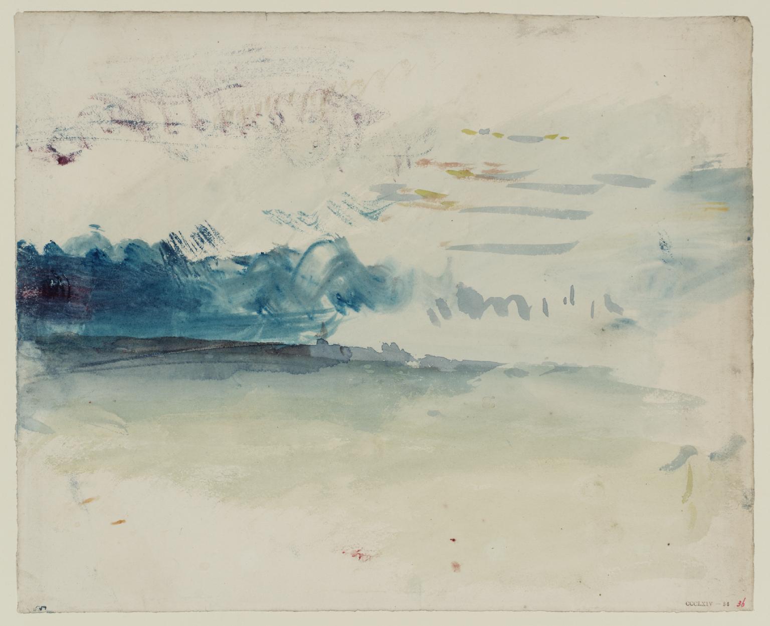 Nevertheless, in each of these works the elements of the composition are reduced to the barest representation of sea and sky. These private, informal studies reveal Turner’s intuitive ability to think of landscape in terms of pure colour.