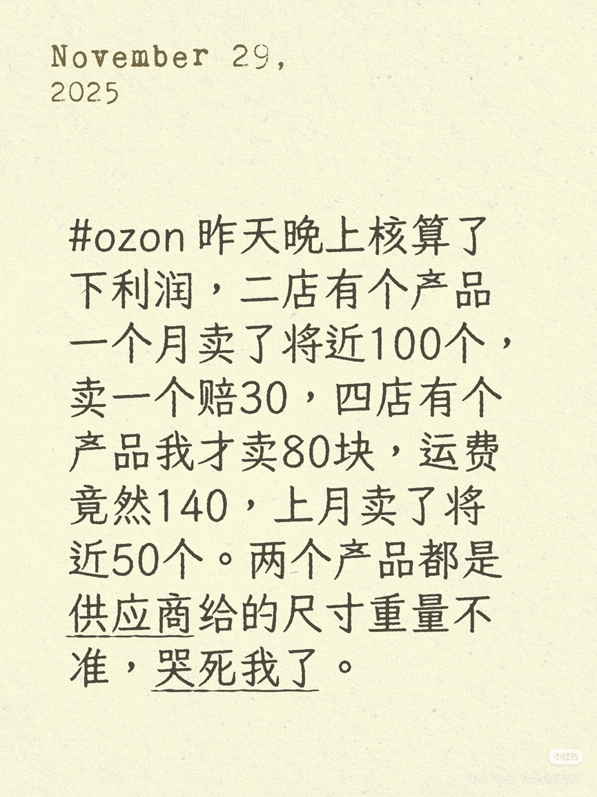 这段文字,几乎是每个Ozon卖家深夜核算利润时,最怕看到的“噩梦照进现实”。它赤裸裸地揭示了跨境电商中最残酷的一个等式:“销量 ≠ 利润”。