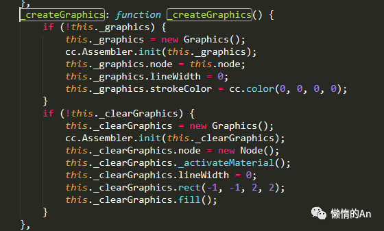 在 _createGraphics 里创建了 Graphics 组件。
