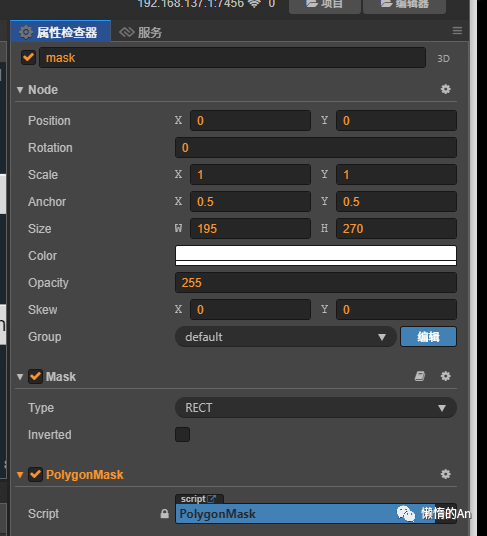 想到可以用 PolygonCollider 组件里的 Points 多边形顶点数组来代替;给 mask 节点挂上 PolygonCollider 组件,我们手动编辑一下,绘制出需要遮罩的轮廓: