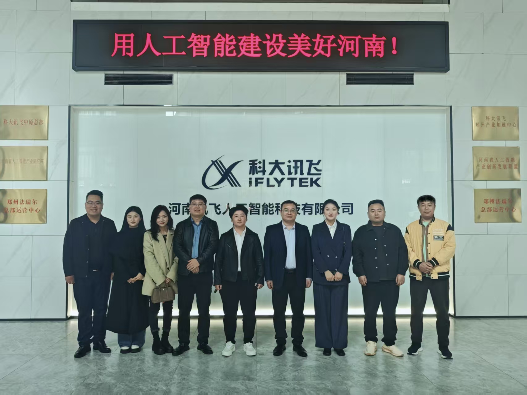 10月30日,应科大讯飞河南教育服务主管陈福来教授的邀请,郑信校党委副书记、校友会秘书长王伟超及校友会工作人员和校友代表刘金梦、王保芳、李松、邵文博一行赴科大讯飞华中区总部开展交流学习活动,深入了解人工智能前沿技术发展与行业应用实践,共探AI赋能教育、产业与社会发展的新路径。