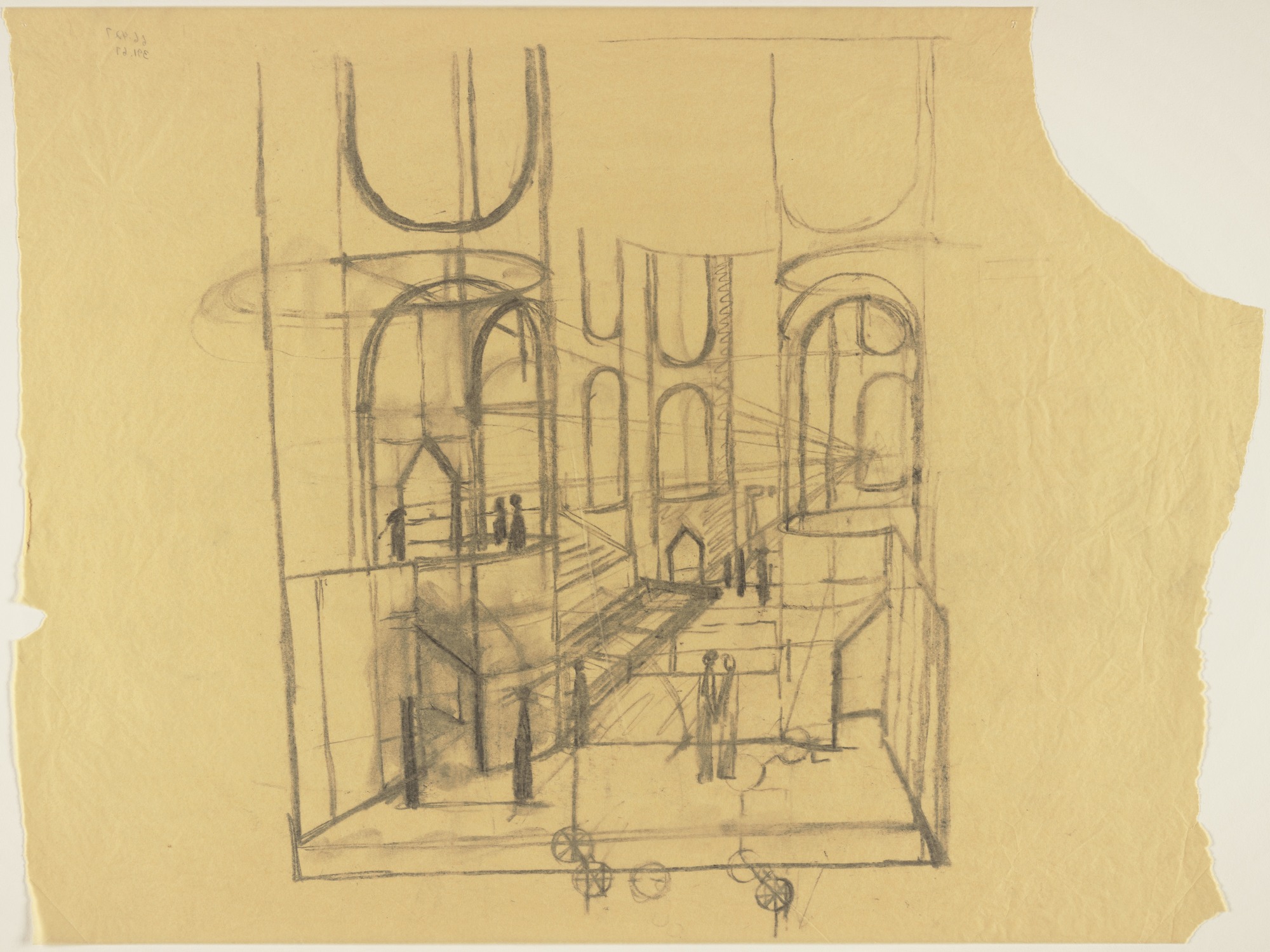 In 1961, a Sephardic Jewish congregation hired Kahn to design a synagogue in a historic section of Philadelphia. The unrealized temple was designed in the Spanish Orthodox tradition, which calls for a central seating area for men and a separate screened seating area for women, a central bema (the platform from which the Torah is read), and an ark housing scrolls at the eastern end of the space.