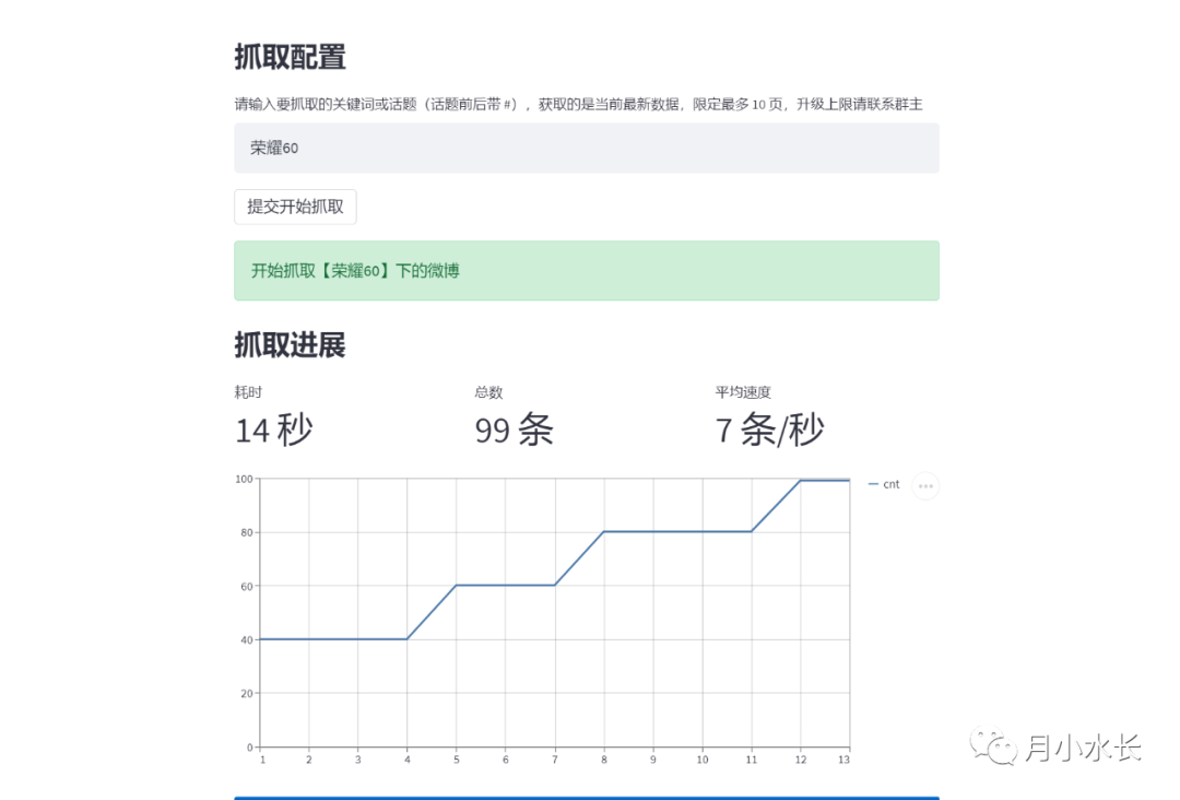 带 ip 属地,无 Cookie 微博话题自助抓取网站上线月小水长关注共 671字,需浏览 2分钟 ·2022-06-01 11:54 点击上方 月小水长 并 设为星标,第一时间接收干货推送这是 月小水长 的第 125 篇原创干货目前公众号平台改变了推送机制,点“赞”、点“在看”、添加过“星标”的同学,都会优先接收到我的文章推送,所以大家读完文章后,记得点一下“在看”和“赞”。本次更新的是无 cookie 话题爬虫,新加了数个字段,主要是 ip 属地、发布属地、用户关注数、粉丝数、认证信息等。同时把它写成了网站,随时随地都能抓取,网站地址是:http://weibo-topic.buyixiao.xyz/站点上可以选择任何话题,实时抓取,无法限定时间段,不过由于服务器性能,对所有用户限定只能抓取最多 10 页也就是 200 条左右。同时测试发现无 cookie 最多能抓 100 页左右,这个开关没有打开,想要突破 10 页的限制,请看网页提示,另外听说经常在公众号留言转发的均有机会。无 cookie 话题爬虫是对 2021 新版微博话题爬虫发布 的补充,相比较而言,它不需要 cookie,实时抓取,适合做监控;而后者可以选择时间段分段大量抓取数据,但需要 cookie。两者使用场景不同,并不矛盾。站点可以实时显示当前话题抓取进度,耗时、总数和平均速度,抓取完成后会出现下载按钮,点击即可下载结果 csv 文件。已经抓取过的会直接显示下载按钮,跳过抓取过程,可以参考一下演示视频。点击阅读原文直达站点地址。文章阅读过 2 千,b 站视频破 1 w,可以加快无 cookie 评论、转发、点赞网站的上线进程。 浏览 93点赞 评论 收藏 分享 手机扫一扫分享分享 举报 评论图片表情视频评价全部评论推荐 templatespider抓取网站数据工具扒网站工具,看好哪个网站,指定好URL,自动扒下来做成模版。所见网站,皆可为我所用!扒下来的网站,会自动变成html模版。js、css、图片等自动分好类,变为标准的模版文件。可以供网市场云建站、帝国Ctemplatespider抓取网站数据工具扒网站工具,看好哪个网站,指定好URL,自动扒下来做成模版。所见网站,皆可为我所用!扒下来的网站,会Python爬虫抓取名人名言网站python教程0Python爬虫抓取名人名言网站马哥Linux运维0老板要我做一个 IP 属地功能!业余草0老板要我做一个 IP 属地功能!我是程序汪0无终止自助烤肉(汽博店)地址重庆市/渝北区/金山街道/渝北区金山街道栖霞路16号6幢1单元1-6人均暂无菜系自助餐,烧烤电话暂无营业时间营业中10:30-21:30无带瘤虻界Animalia-动物界(dòngwùjiè)门Arthropoda-节肢动物门(jiézhīdòngwùmén)纲Insecta-昆虫纲(kūnchónggāng)目Diptera-双翅目(shu“人在美国刚下飞机”,IP 属地显示湖南码农突围0“人在美国刚下飞机”,IP属地显示湖南C语言题库0点赞 评论 收藏 分享 手机扫一扫分享分享 举报