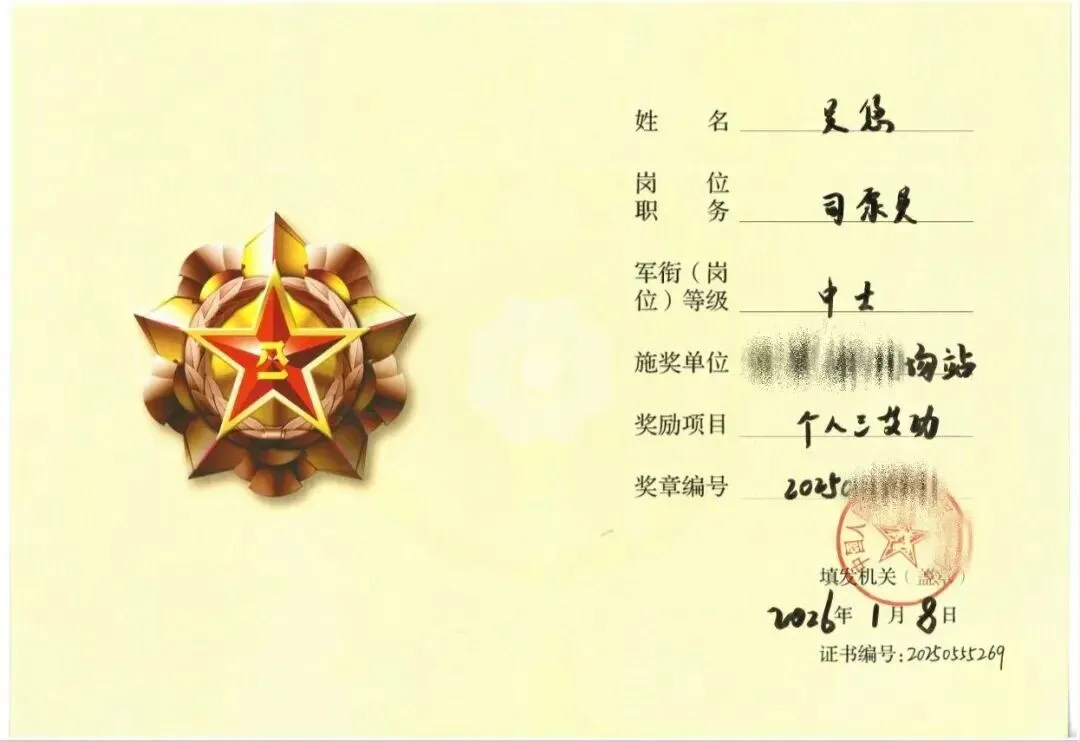 正是在一点一滴的积累与一次一次的拼搏中,吴悠以优异的综合表现,脱颖而出,荣立三等功。这枚沉甸甸的军功章,凝聚着他的辛勤付出与赤胆忠诚,闪耀着军人无上的荣光。