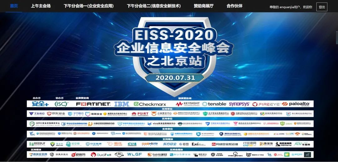 2020年7月31日,由安全+ 主办的“EISS-2020企业信息安全峰会之北京站”在线上成功举办。此次大会是安全+ 在北京连续举办的第三次EISS峰会,也是EISS系列峰会的第八届,峰会以”直面信息安全挑战,创造最佳实践案例“为主题,吸引超过500位来自于各行业的企业信息安全负责人、安全专家报名参加。