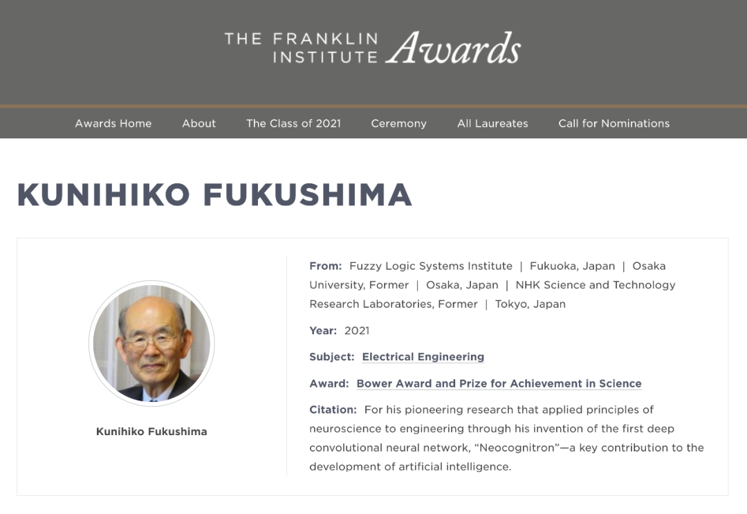 真 · 神经网络发明人福岛邦彦获奖,Schmidhuber、李飞飞点赞