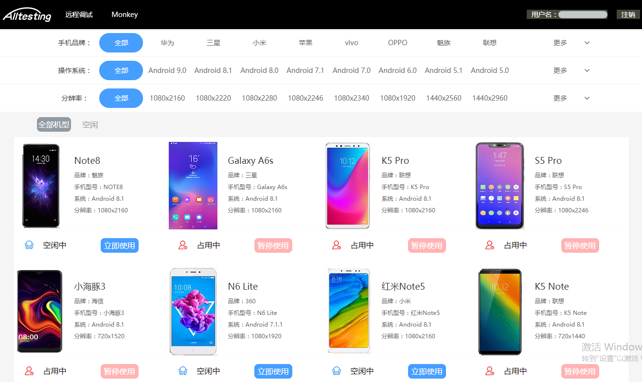 Alltesting真机云:http://atc.alltesting.cn:8888/AllMachineDebug/jsp/login.jsp