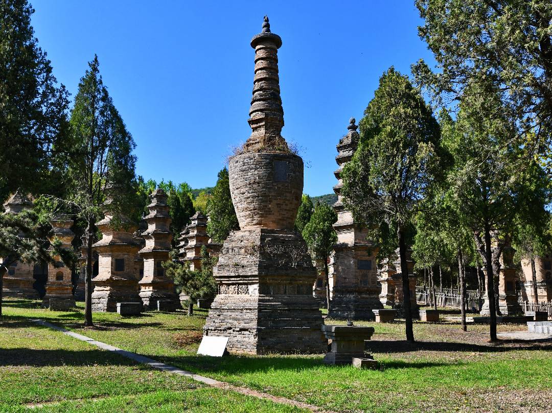 塔林位于少林寺西约300米的小山脚下,占地面积约2万平方米,有唐、宋、金、元、明、清及现代砖石墓塔231座。这里是历代少林高僧安息的墓地。现存唐朝至清朝历代砖、石墓塔240余座。1996年,它和初祖庵被公布为国家级重点文物保护单位。因塔类繁多,大小参差,高低不同,粗细不一,形式多样、排列散乱,看似茂林,故称为塔林。
