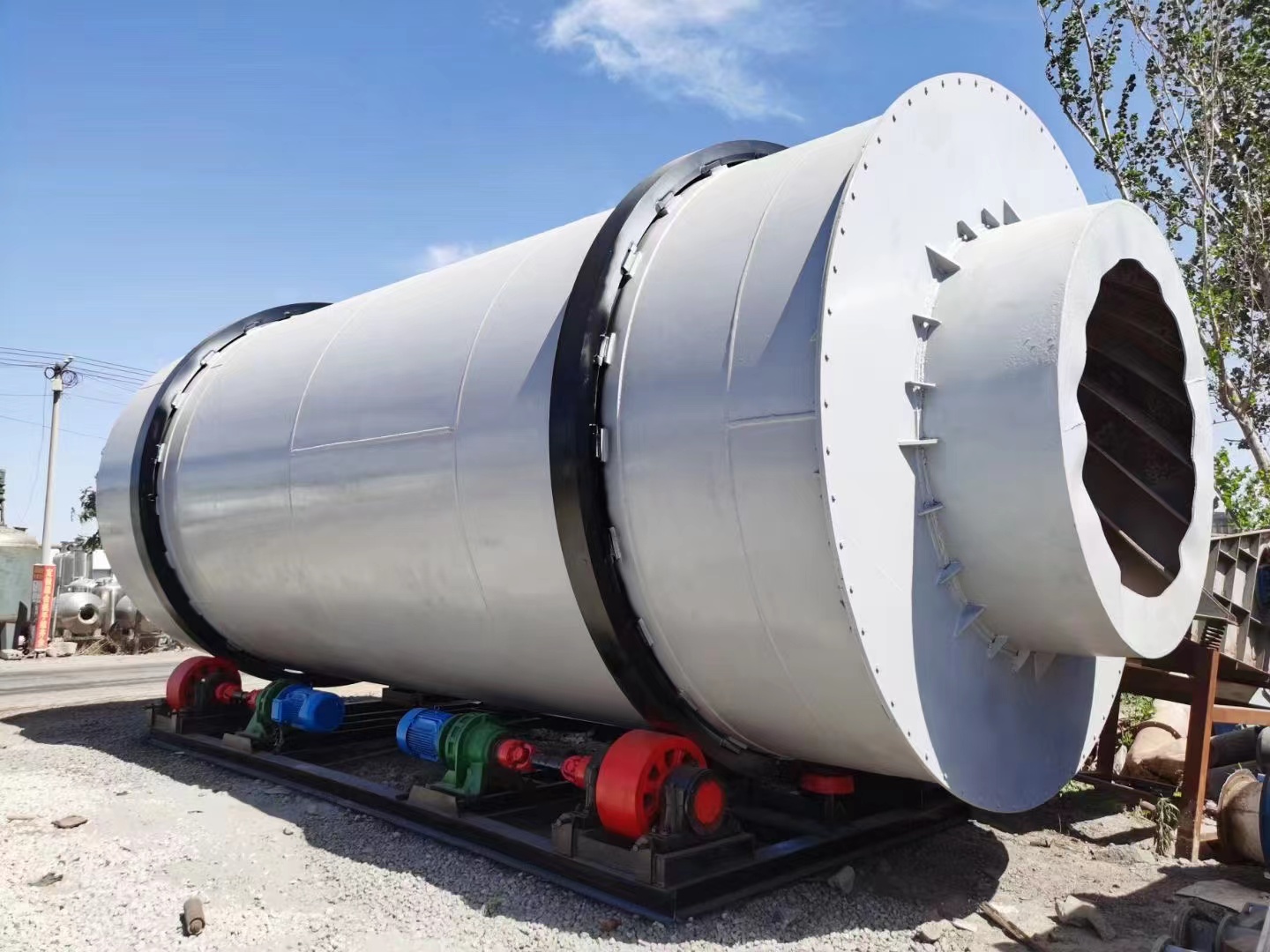 其主体为一个略呈倾斜放置的旋转滚筒。湿物料从高端进入筒内,在与通入的热气流(直接或间接加热)接触过程中,随滚筒转动被提升、散落,以增大换热面积,从而蒸发水分。干燥后的物料从低端排出。