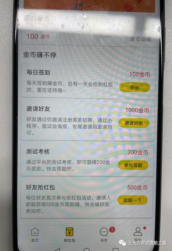 抓包金币列表接口数据如下,每日签到的name=每日签到、coin=100、iconname=签到、status=0,未签到,Button是亮起
