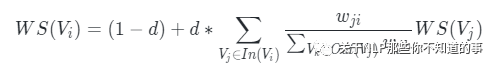 3,. 句子权重计算:迭代传播权重计算各句子的得分,计算公式如下: