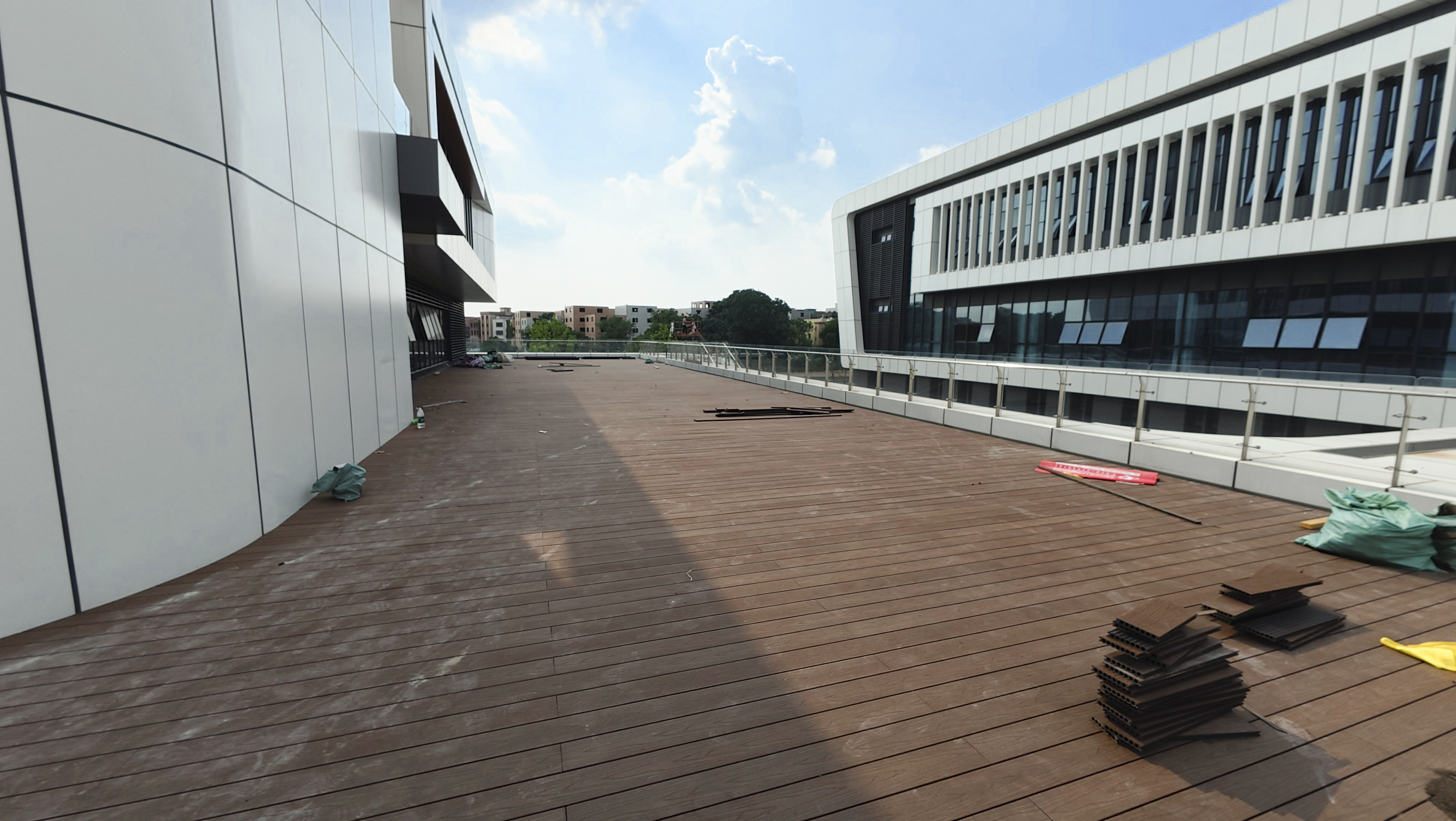 基础信息:标准规格23*148/140*3000/4000mm,支持定制;材质为**PE+白杨木粉**,核心升级是**表层包覆0.5-0.6mm高分子膜**(采用德国进口共挤设备,膜层与基层结合力达1.5MPa以上,避免脱落)。性能表现:24小时吸水膨胀率0.3%(较一代降低75%,接近“不吸水”水平);表面磨耗值0.08g/100r(较一代提升47%,可承受高跟鞋、轮椅等重物摩擦);加速老化测试(2000小时)后,褪色率≤5%,抗紫外线能力达UVA98%(有效防止阳光直射导致的褪色);防霉等级保持0级。应用场景:适配别墅庭院、高端阳台及商业项目,典型案例包括**广州白云机场三期空管中心屋顶露台**(2800㎡,要求“防水+耐磨+美观”)、**顺德美的君澜高尔夫私人花园**(别墅庭院,注重“低维护+长寿命”)。定制与服务:定制范围同一代,售后质保延长至5年(覆盖膜层脱落、褪色等问题);安装服务增加“防滑处理”(针对阳台等湿滑场景)。环保性:与一代一致,可回收利用率提升至95%(高分子膜可与基层同步回收)。性价比:终端单价约180元/㎡,适合追求品质的高端用户。